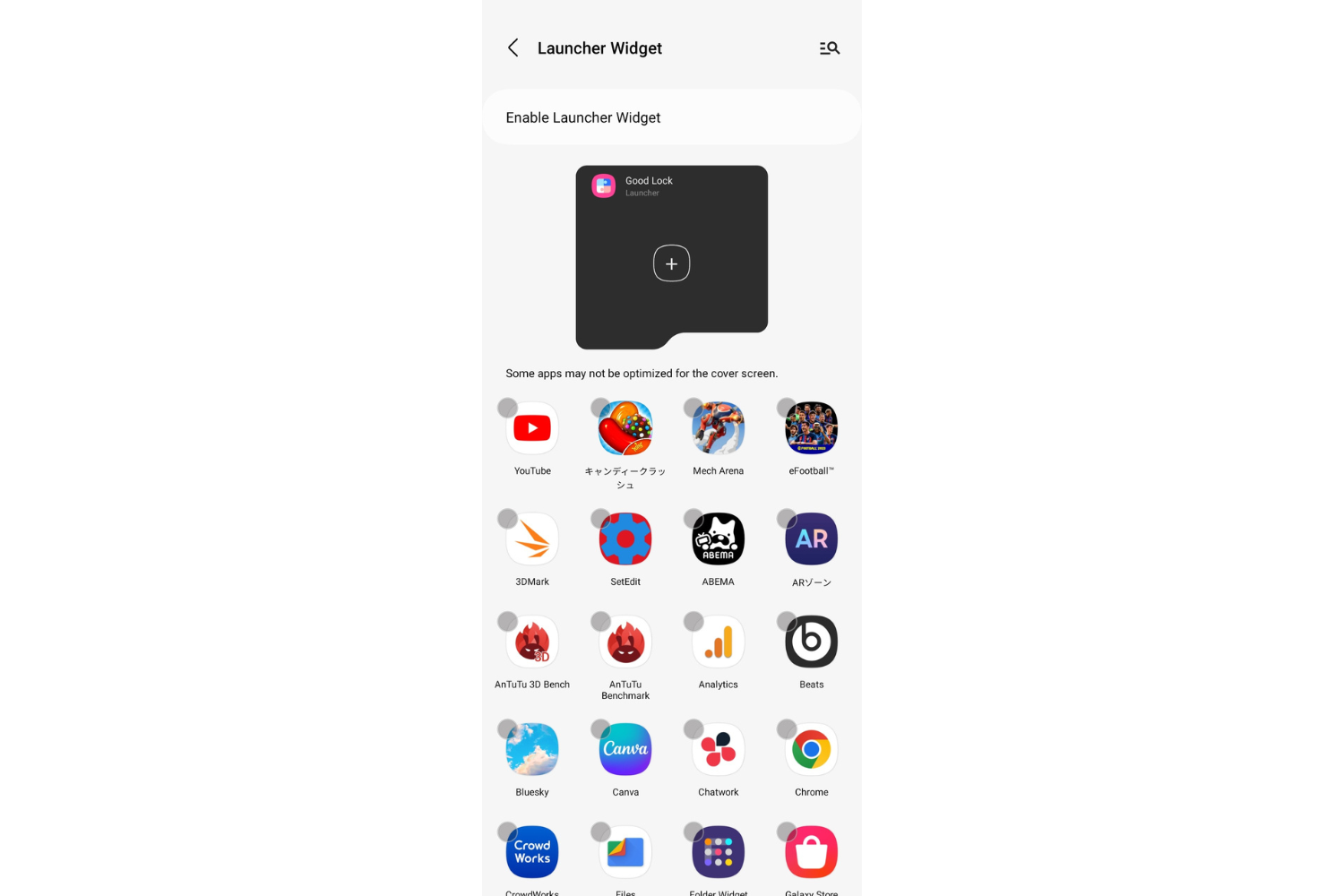 Good LockにはGalaxy Z Flip5/Z Flip6のカバーディスプレイで全アプリを動かせるようにするカスタマイズ項目があります。