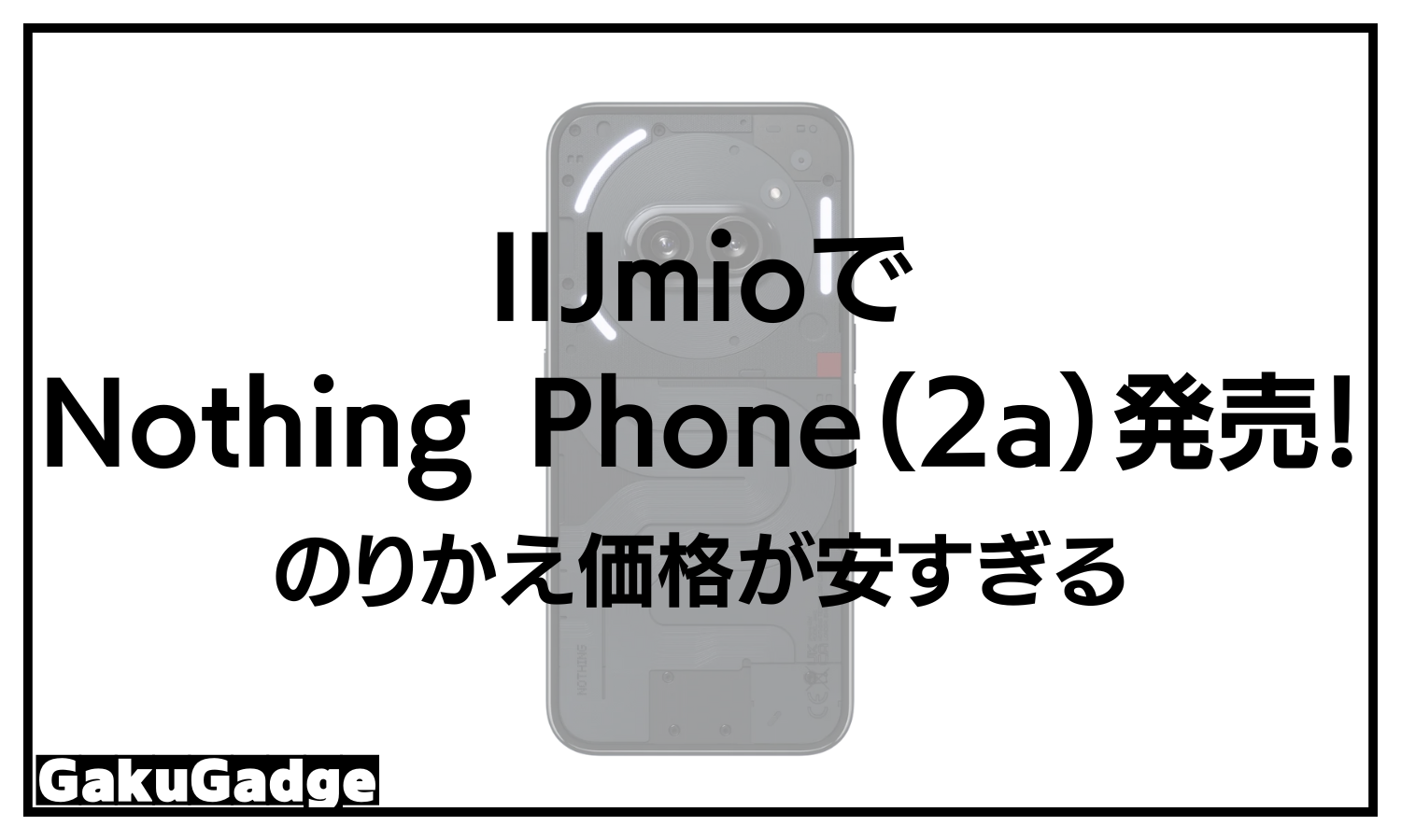 2024年4月18日、格安SIMのIIJmioはNothingの最新スマホ Nothing Phone(2a)を4月22日から販売開始することをアナウンスしました。