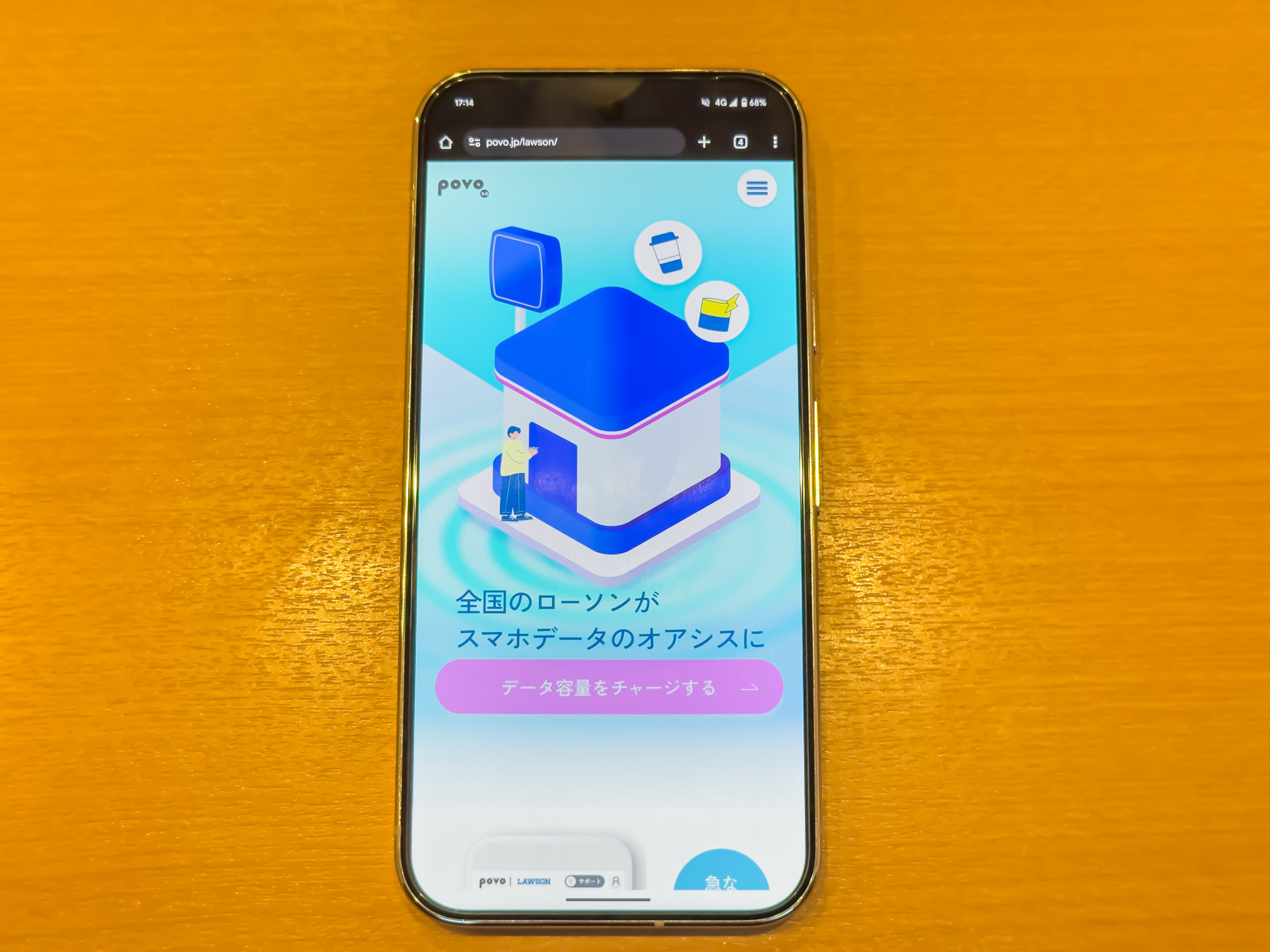 まずは、ローソンに行ってpovo Data Oasisのページを開きます。ページはpovo2.0のアプリ内にバナーがあるので、そこからアクセスできます。
